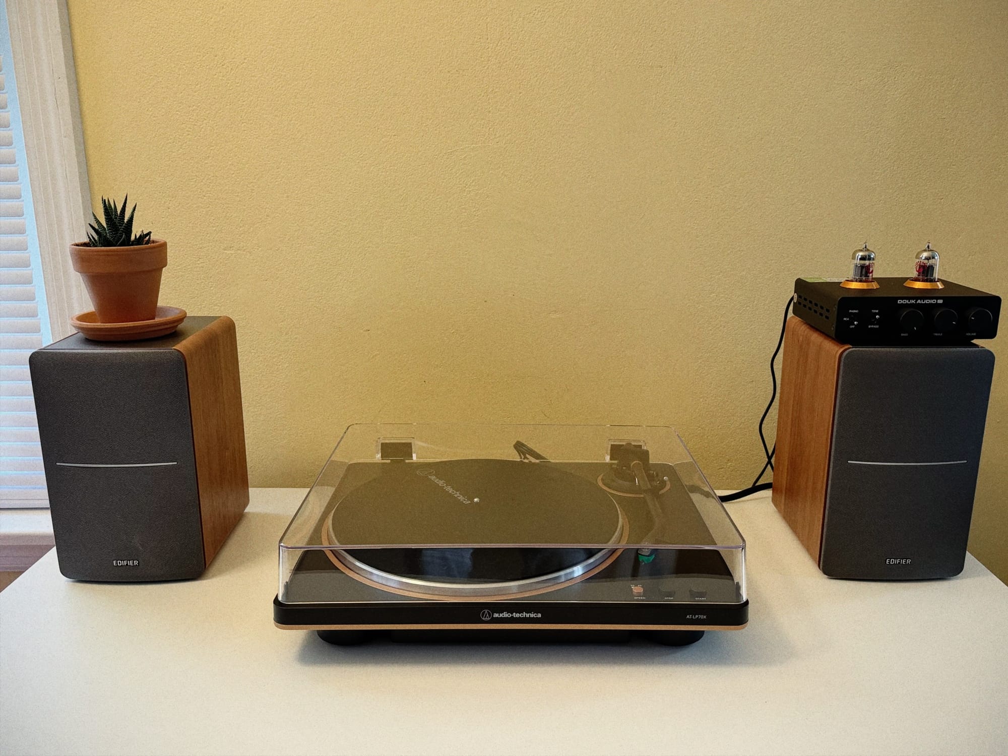 My new setup is modest but intentional: a solid turntable paired with a small vacuum tube phono preamp, and a set of powered speakers I’ve owned for almost ten years.